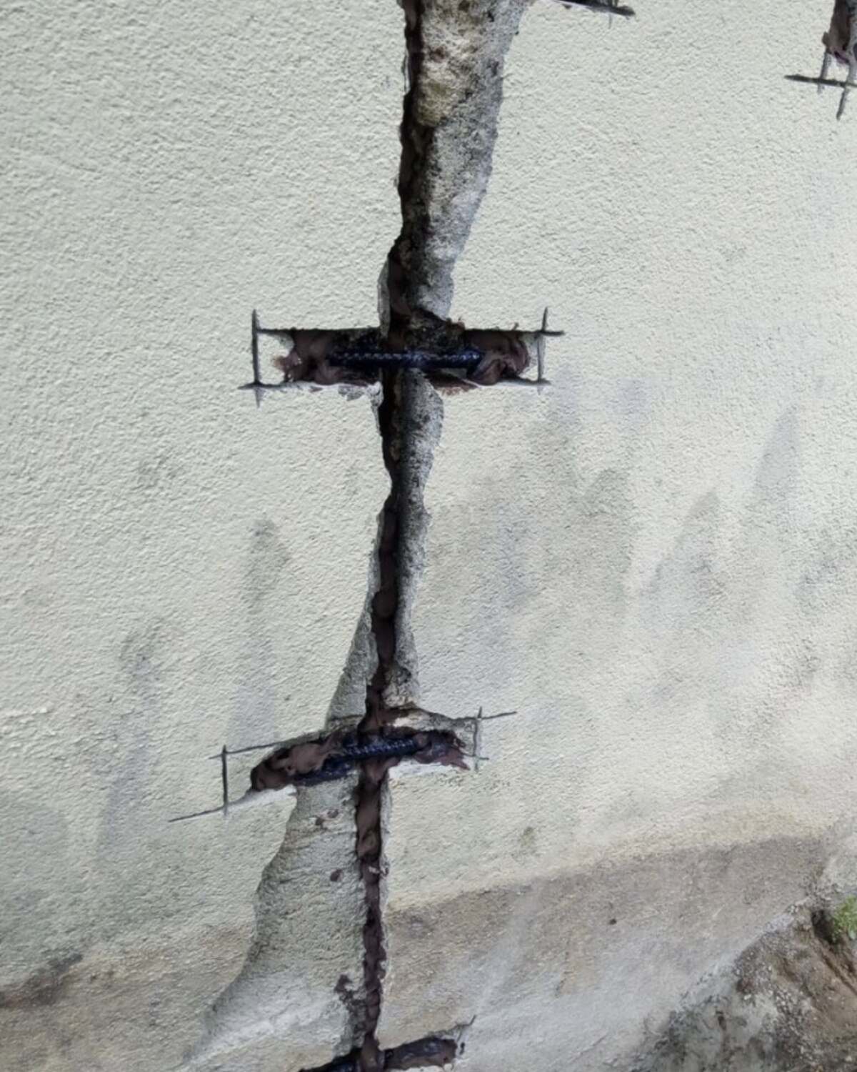 Mise en place d’agrafes métalliques scellées transversalement à la fissure.
